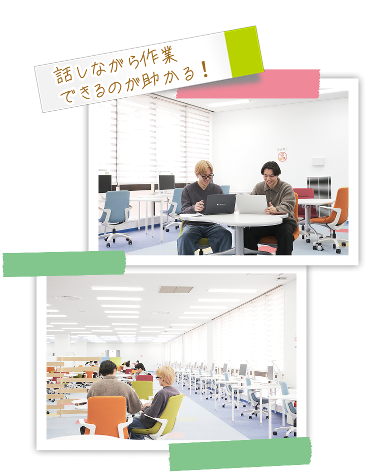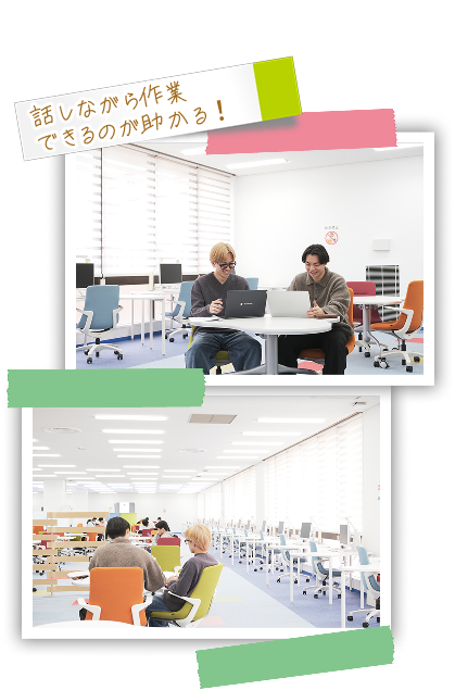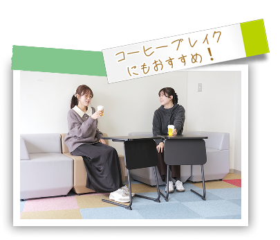 合間に友人と課題に取り組んだり、読書に没頭したりするのに最適です。