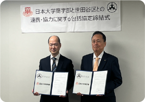 日本大学商学部には、ビジネスの現場で活きる「実学」を学び、研究できる環境が整っています。過去にもその強みを活かし、企業や地域、行政と連携しながらさまざまな社会課題と向き合ってきました。こうした取り組みは、大学と社会との関わりを深めることはもちろんのこと、学生が社会と接点を持ち、生きた学びを得る貴重な機会にもなっています。2023年、日本大学商学部にも社会連携センターが設立されました。大学と社会がともに成長するため、さらに連携を深めていきたいですね。
