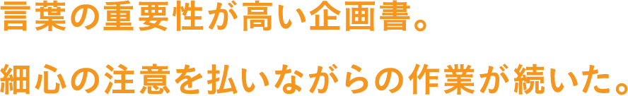 平田さん:企画書内に写真やイラストを使うことでイメージを伝えやすくなるケースもありますが、今回は保険という目には見えないサービスなので、ほとんど使えるものがありませんでした。言葉の重要性が高くなるので、かなり気を遣いながらの作業でした。