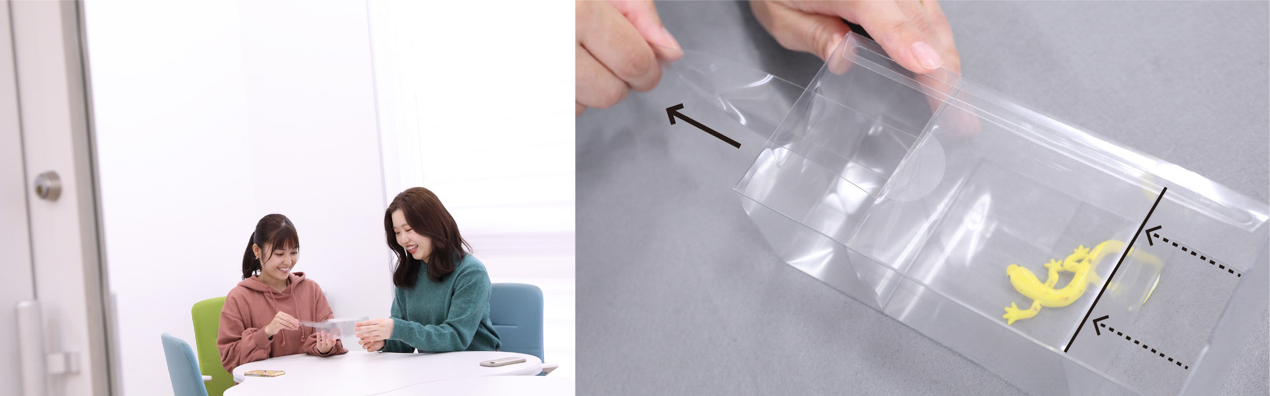 Sカレに向けた活動を開始して最初の3ヶ月は、とにかくチーム全員でアイデアを出すことに費やしました。さまざまなアイデアが出たのですが、どれも決め手に欠けるものばかり。ある時、クリアシートが透明であることから派生して「目の前にあるものを透明にできるとしたら何を透明にしたい?」を大喜利みたいにゼミ生に聞いてまわったところ、多くの人が「虫」と答えたんです。確かに一人暮らしの部屋に虫が出たら捕まえるのに困りますから、ここに需要があるかもしれないと、虫をキーワードにした商品を考えることにしました。