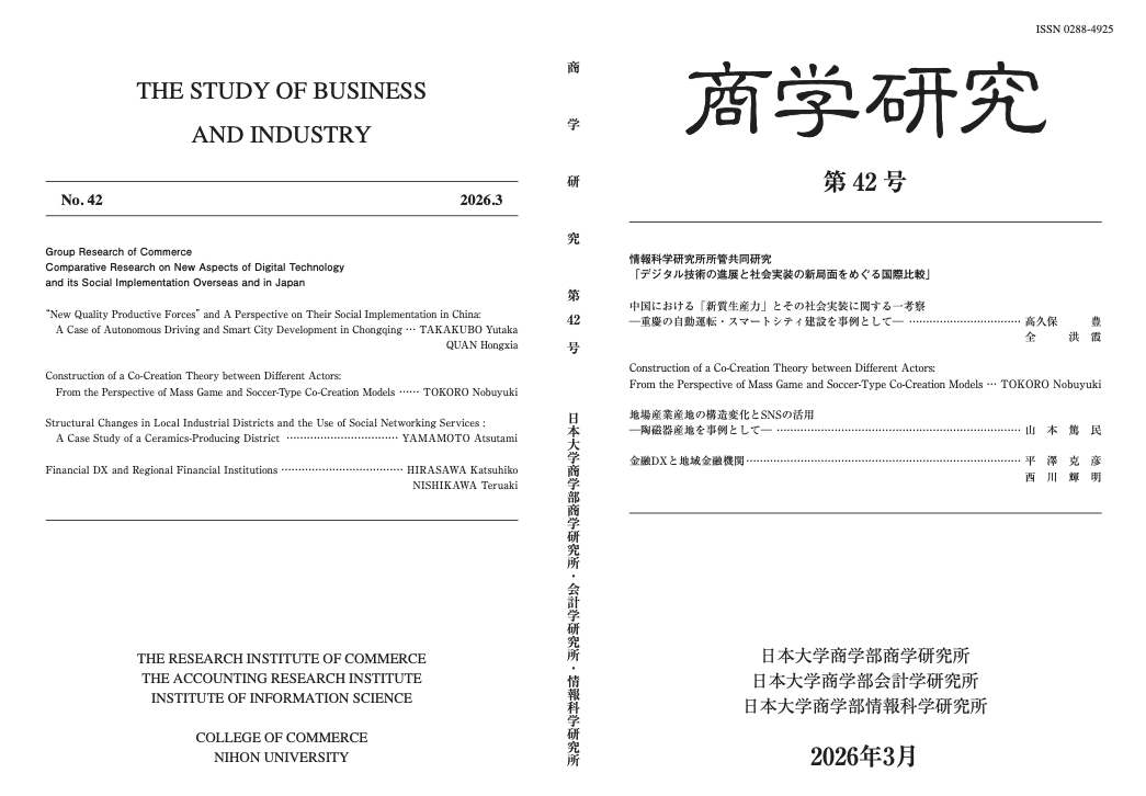 日本大学商学部では、大学における教育、研究の成果を公開し社会の発展に貢献することを目的として、教職員が発表した研究論文をまとめた紀要『商学集志』『総合文化研究』『商学研究』を発行・公開しています。