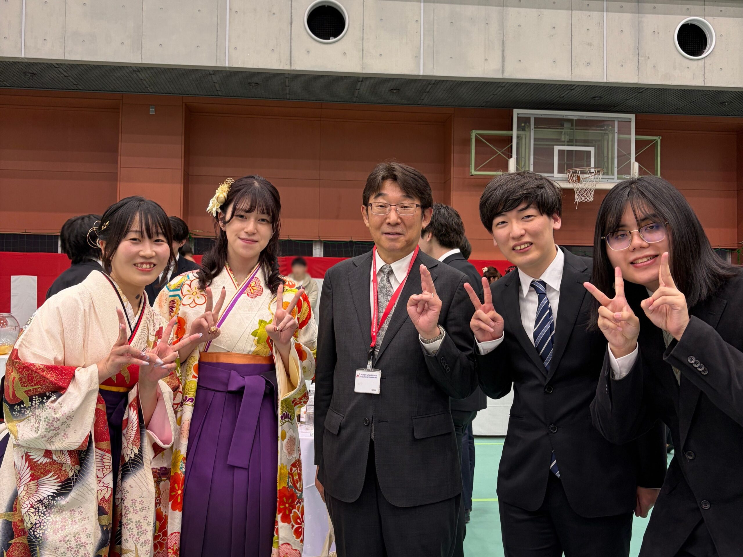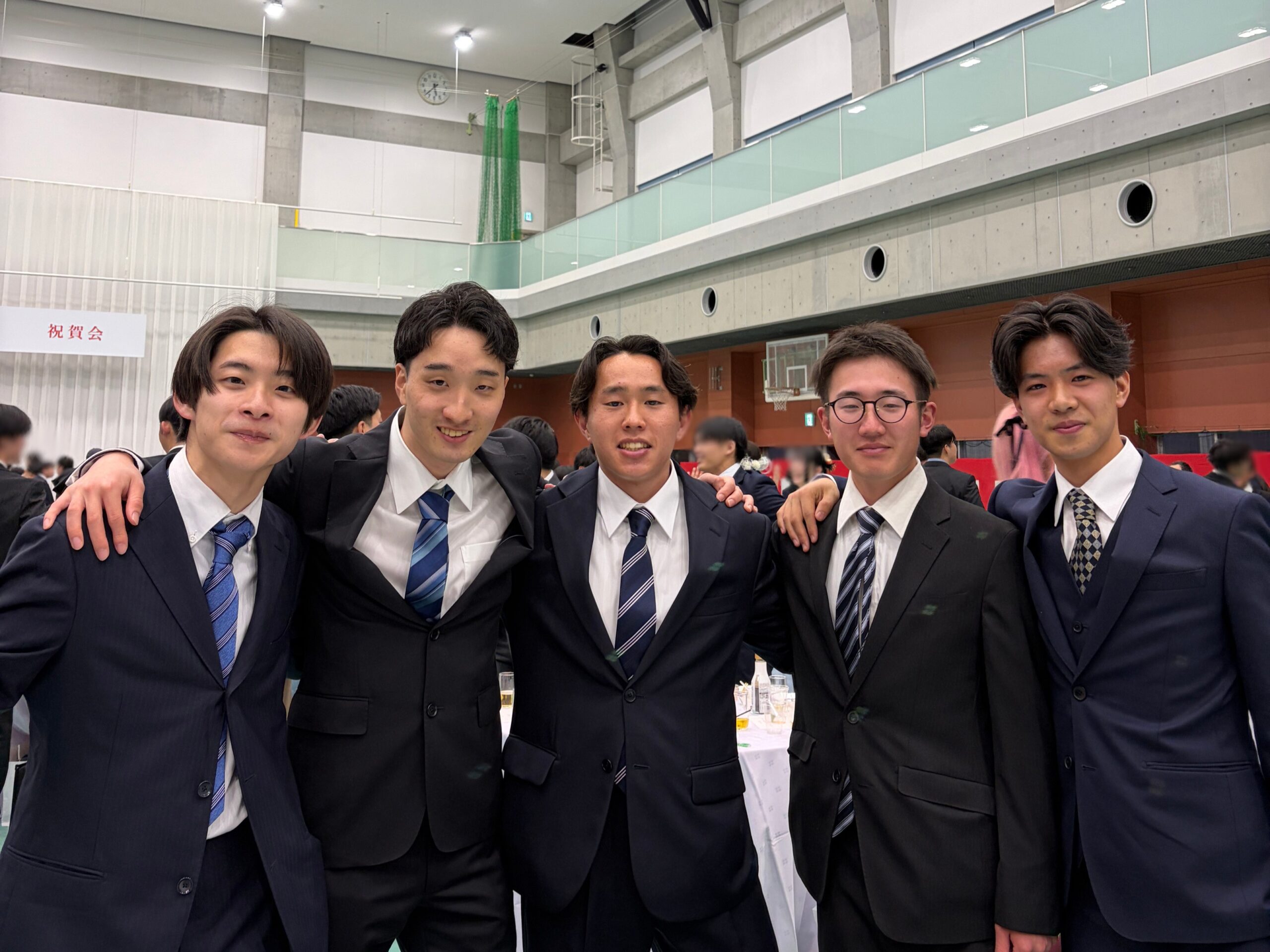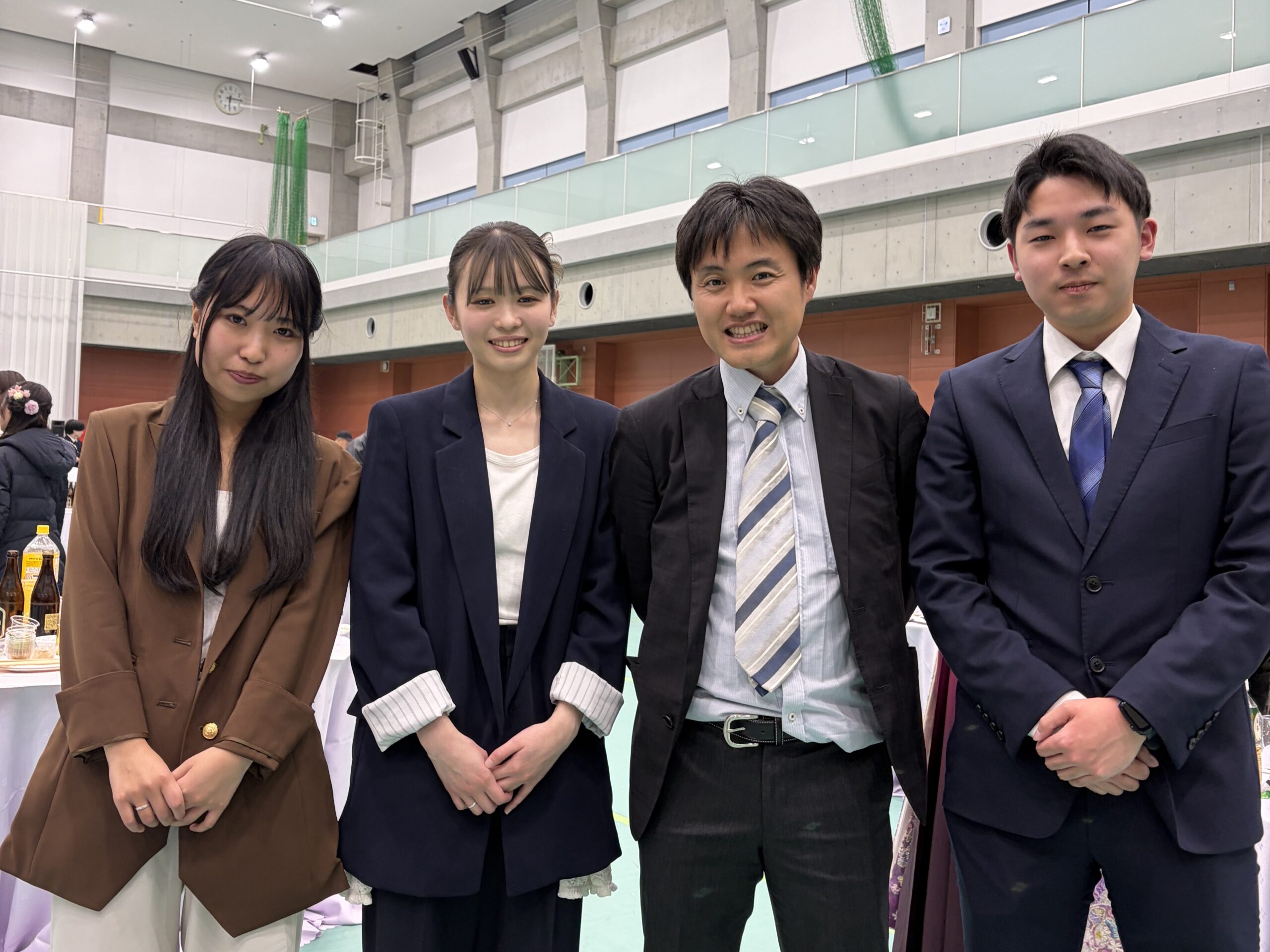 学位記伝達式の後は,100周年記念体育館アリーナにて卒業祝賀会が開催され,教職員や友人とこれまでの思い出話に花を咲かせました。