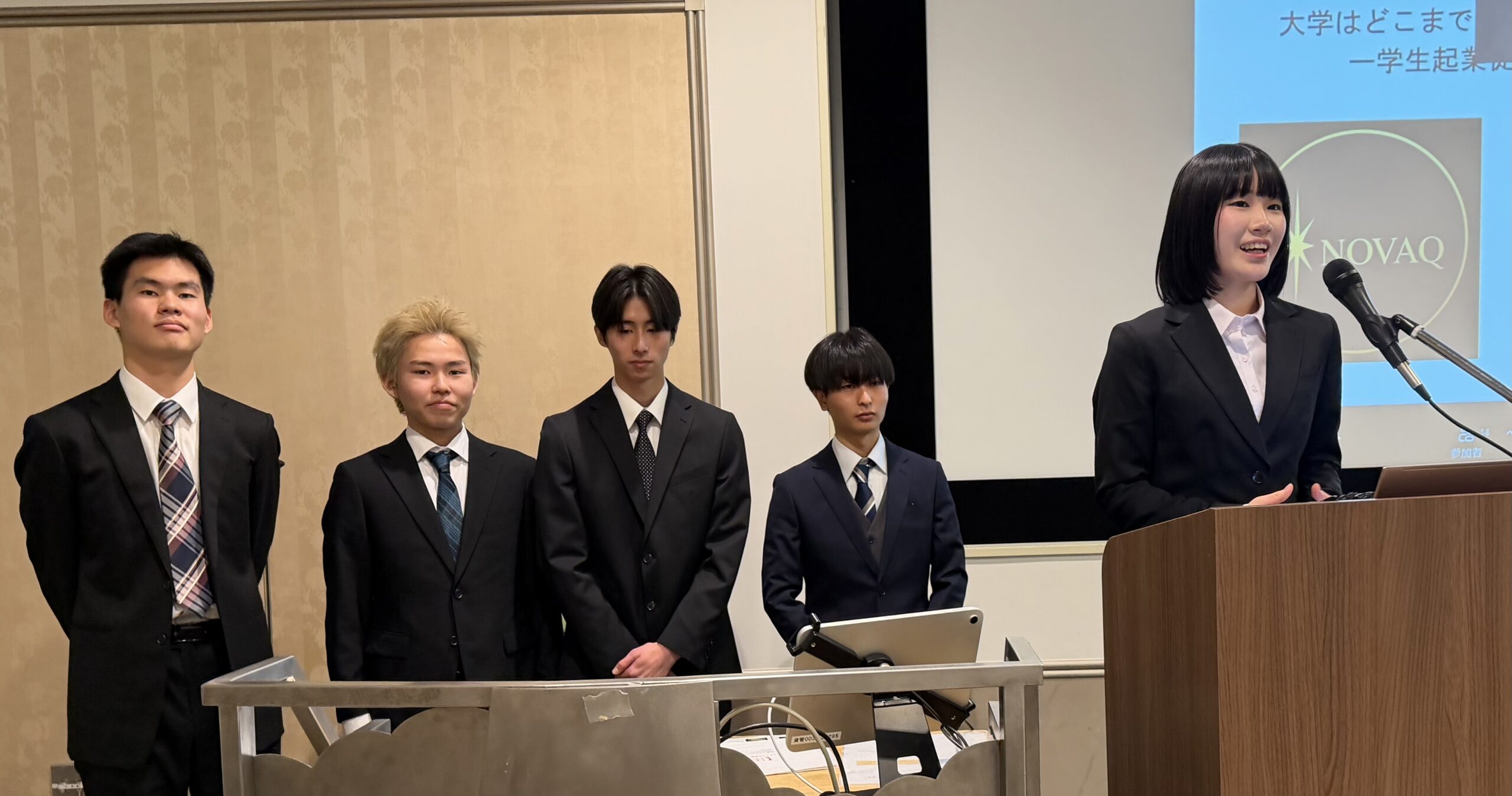 ※チームNOVAQメンバー:岡田七海さん(経営学科3年) ,神田惇英さん(会計学科4年) ,平岡紅葉さん(経営学科 3 年) ,久保田真亘さん(経営学科 3 年) ,五十嵐尚哉さん(経営学科2年) ,齊藤璃空さん(経営学科2年) ,菅原佑太さん(経営学科2年)